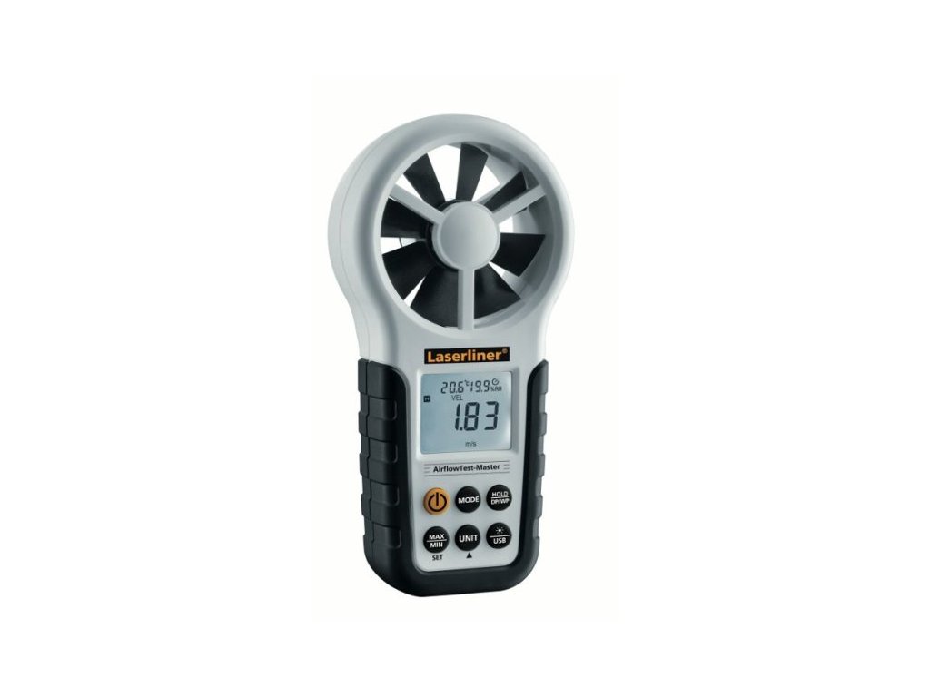 Profesionální anemometr pro měření průtoku vzduchu, objemového průtoku a rychlosti větru. Integrovaný senzor pro měření okolní teploty, relativní vlhkosti a rosného bodu. Vnitřní paměť pro ukládání naměřených dat. USB rozhraní a PC software. Velké oběžné kolo 65 mm. 1/4 závit na stativ. Osvětlený, přehledný displej. Dodáno s: AirflowTest-Master, PC software, USB kabel, baterie, přepravní kufr.Doplňkové parametry