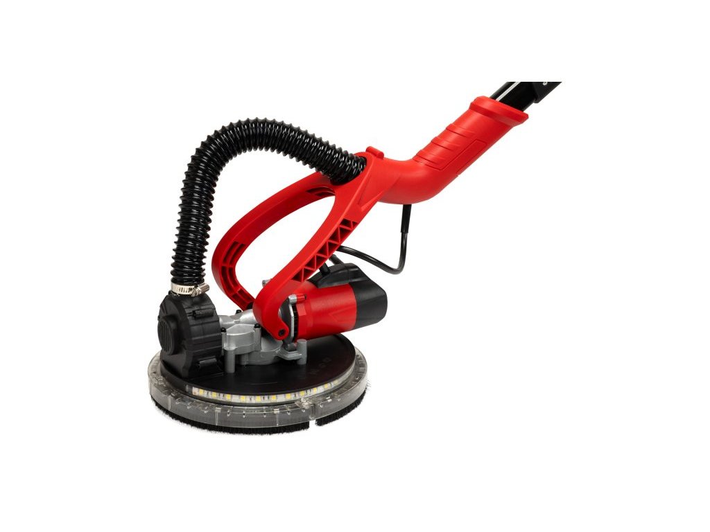 <ul style="color: red"> <li type="square"><span style="color: black"> nástěnná a stropní bruska na sádrokarton "ŽIRAFA" s výkonným motorem a odsáváním prachu</li> <li type="square"><span style="color: black"> bruska teleskopicky nastavitelná v rozsahu 110 - 180 cm</li> <li type="square"><span style="color: black"> <b>soft start</b> - nastavitelné otáčky 1000 - 1800 /min pro optimální výsledky při broušení</li> <li type="square"><span style="color: black"> výkyvná brusná hlava pro přizpůsobení stěnovému, stropnímu nebo podlahovému broušení</li> <li type="square"><span style="color: black"> využití nejen na broušení sádrokartonu, ale také na broušení podlah, odstraňování starých nátěrů, lepidel apod.</li> <li type="square"><span style="color: black"> ergonomická pogumovaná madla a rukojeti pro pohodlný úchop při daném druhu práce</li> <li type="square"><span style="color: black"> kloubový mechanismus s masivní kovovou pojistkou - brusku lze jednoduše zklopit a uložit do kufru pro přenos nebo uložení</li> <li type="square"><span style="color: black"> LED osvětlení po celém obvodu brusné hlavy</li> <li type="square"><span style="color: black"> Parametry :<ul style="color: red"> <li type="disc"><span style="color: black"> <b>napětí 230 V</li> <li type="disc"><span style="color: black"> příkon max 750 W</li> <li type="disc"><span style="color: black"> průměr brusné hlavy 225 mm</li> <li type="disc"><span style="color: black"> nástvitelná délka v rozsahu 110 - 180 cm</li> <li type="disc"><span style="color: black"> otáčky 1000 - 1800 min-1</li> <li type="disc"><span style="color: black"> délka sací hadice 4 a 1,5 m</li> <li type="disc"><span style="color: black"> délka napájecího kabelu 4 m</li> <li type="disc"><span style="color: black"> hlučnost 94 dB</li> <li type="disc"><span style="color: black"> hmotnost 4,3 kg</li> <li type="square"><span style="color: black"> Příslušenství: <ul> <li type="disc"><span style="color: black"> sací hadice 4 a 1,5 m, vak na prach, 6x brusný výsek 225 mm(P80, P100, P120, P150, P180, P240) kufr</li></ul> </ul>Doplňkové parametry