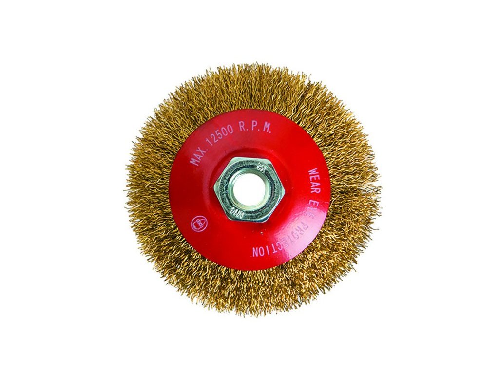 Kartáč miskový s mosaznými vlnitými drátky, uchycení M14, miskový, vhodné pro nerezové materiály. <ul style="color: red"> <li type="square"><a href="https://www.youtube.com/watch?v=Gu1sL6isc6E">Instruktážní video</a></li> </ul>Doplňkové parametry