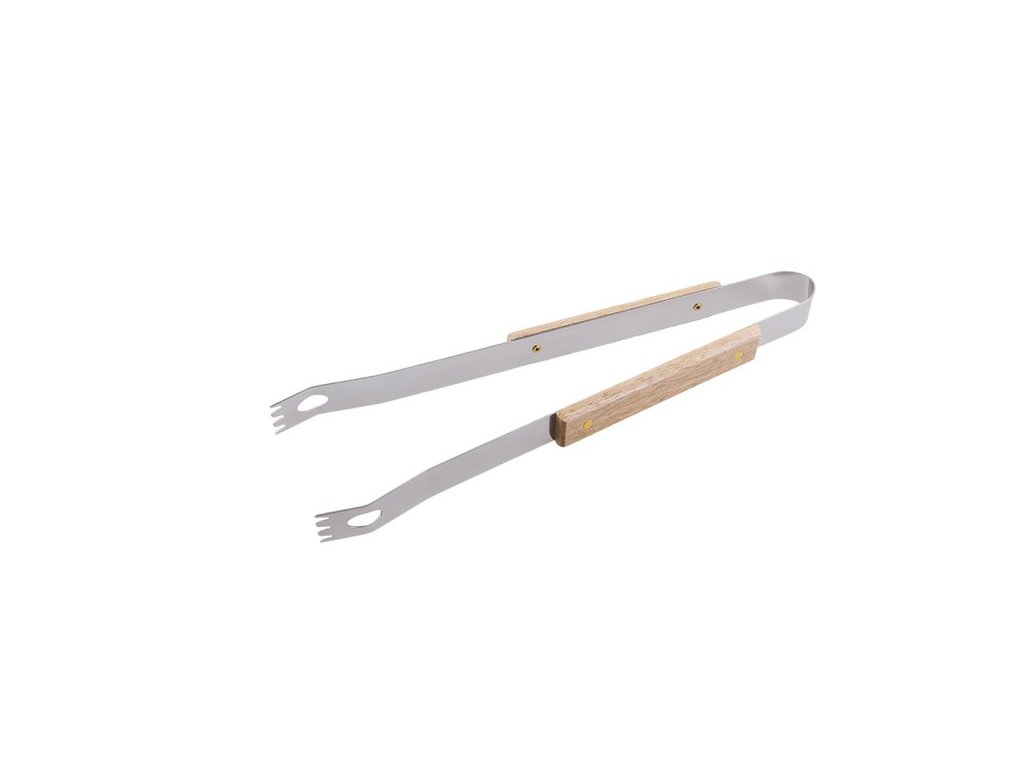 Grilovací kleště, nerez / dřevo, rozměr : délka 33 cm, použití : pro grilování a vaření, v domácnosti, na zahradě, při kempování…, snadná a bezpečná manipulace s pokrmy při tepelné úpravě na grilu, pánvi…, balení : blistr s eurootvorem.Doplňkové parametry