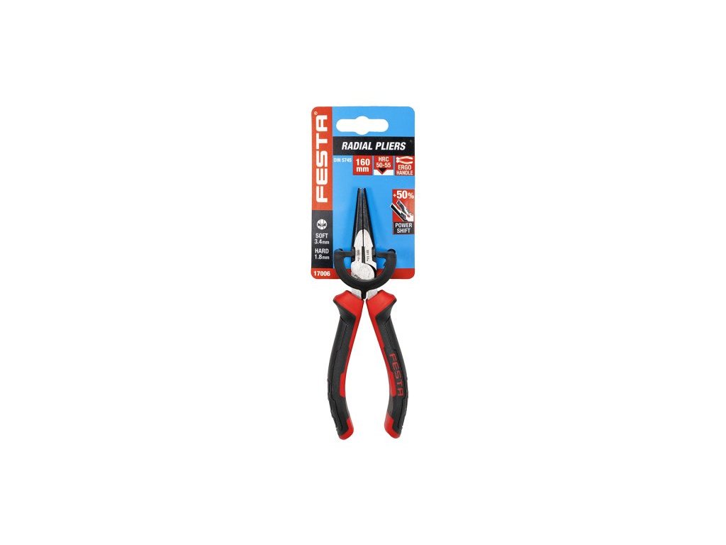 <ul style="color: red"> <li type="square"><span style="color: black"> kvalitní radiové kleště FESTA</li> <li type="square"><span style="color: black"> uhlíková ocel, čelisti indukčně kalené <b>tvrdost 50 - 55 HRC s antikorozní úpravou</b></li> <li type="square"><span style="color: black"> ergonomické dvoukomponentní měkčené rukojeti, při úchopu a stisku o <b>30% více kontaktu s rukojetí - redukuje množství potřebné síly</b></li> <li type="square"><span style="color: black"> výrobce je držitelem certifikátu ISO 90001</li> </ul>Doplňkové parametry