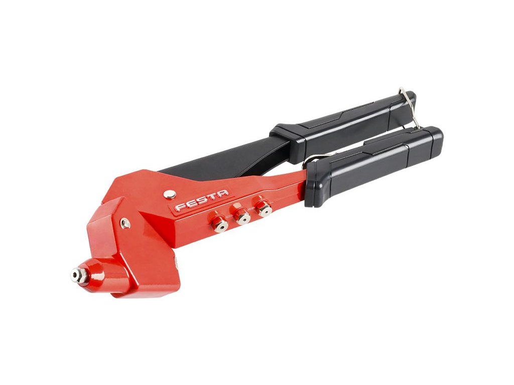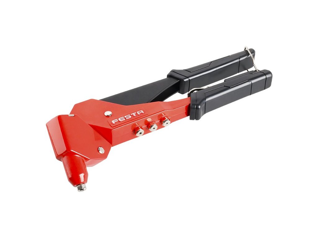 <ul style="color: red"> <li type="square"><span style="color: black"> nýtovací kleště FESTA s otočnou hlavou <b>360 °</b></li> <li type="square"><span style="color: black"> <b>Cr - MO čelisti - pro všechny druhy trhacích nýtů</b></li> <li type="square"><span style="color: black"> robustní ocelový rám, skvělý přenos síly na čelisti v jakékoli nastavené poloze, plastové rukojeti</li> <li type="square"><span style="color: black"> pro nýty: 2,4 - 3,2 - 4,0 - 4,8 mm</li> <li type="square"><span style="color: black"> <b>pro nýtování v hůře přístupných místech</b></li> <li type="square"><span style="color: black"> hmotnost 620g</li> </ul><ul style="color: red"> <li type="square"><a href="https://www.youtube.com/watch?v=F_FR-N04_Fw&t=29s">Instruktážní video</a></li> </ul>Doplňkové parametry