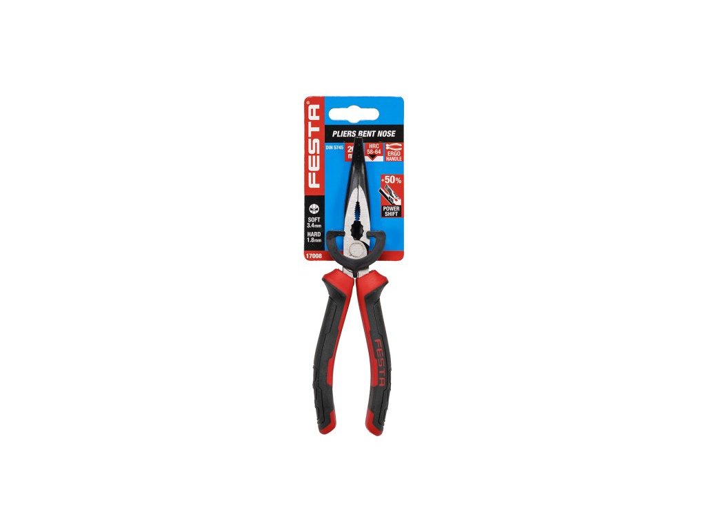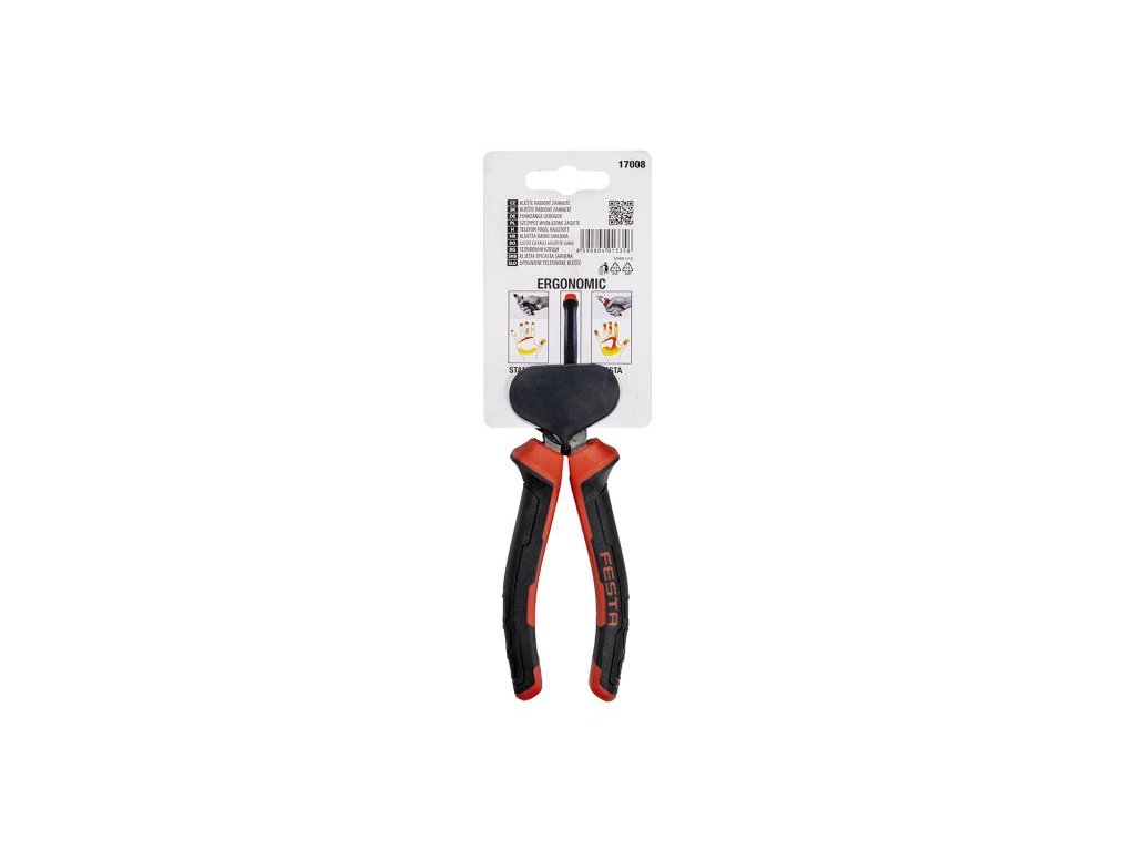 <ul style="color: red"> <li type="square"><span style="color: black"> kvalitní radiové zahnuté kleště FESTA</li> <li type="square"><span style="color: black"> uhlíková ocel, čelisti indukčně kalené <b>tvrdost 50 - 55 HRC s antikorozní úpravou</b></li> <li type="square"><span style="color: black"> ergonomické dvoukomponentní měkčené rukojeti, při úchopu a stisku o <b>30% více kontaktu s rukojetí - redukuje množství potřebné síly</b></li> <li type="square"><span style="color: black"> tenké a zahnuté čelisti pro hůře přístupná místa</li> <li type="square"><span style="color: black"> výrobce je držitelem certifikátu ISO 90001</li> </ul>Doplňkové parametry