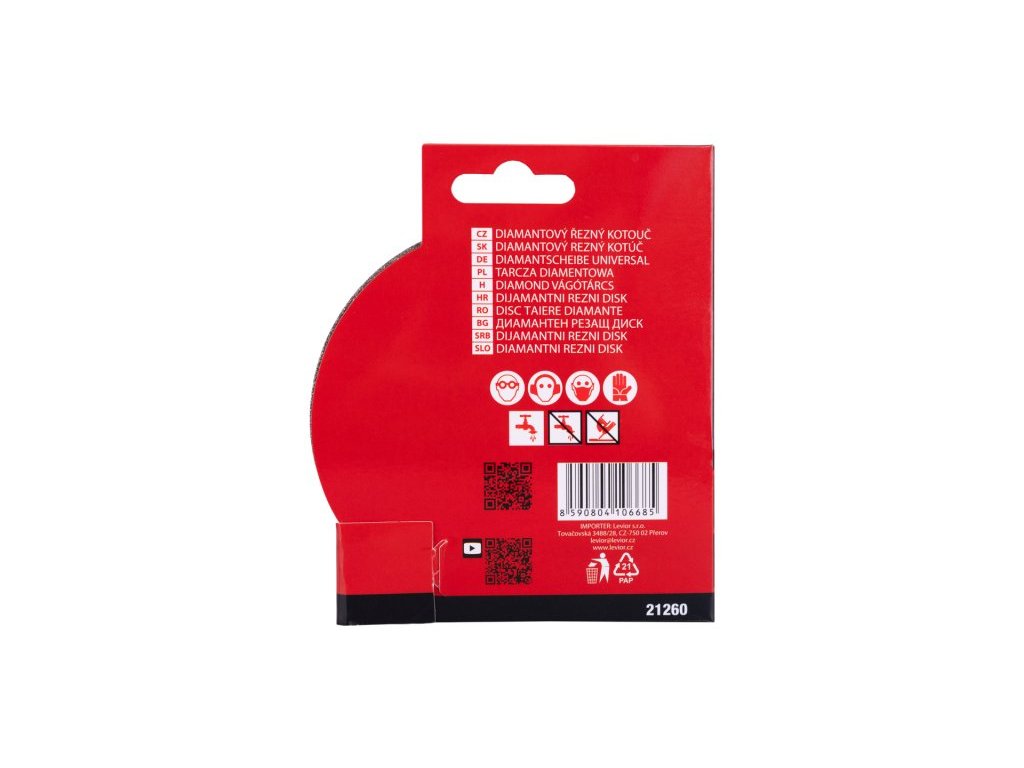 <ul style="color: red"> <li type="square"><span style="color: black"> profesionální diamantový řezný kotouč na žezání <b>skla</b>, keramiky, tvrdých glazovaných dležeb a obkladů, apod. materiálů</li> <li type="square"><span style="color: black"> celoobvodové provedení, možnost řezání <b>s i bez chlazení, síla kotouče jen 1,6 mm</b></li> <li type="square"><span style="color: black"> <b>výška diamantové vrstvy 15 mm, rychlý a čistý řez</li> </ul>Doplňkové parametry