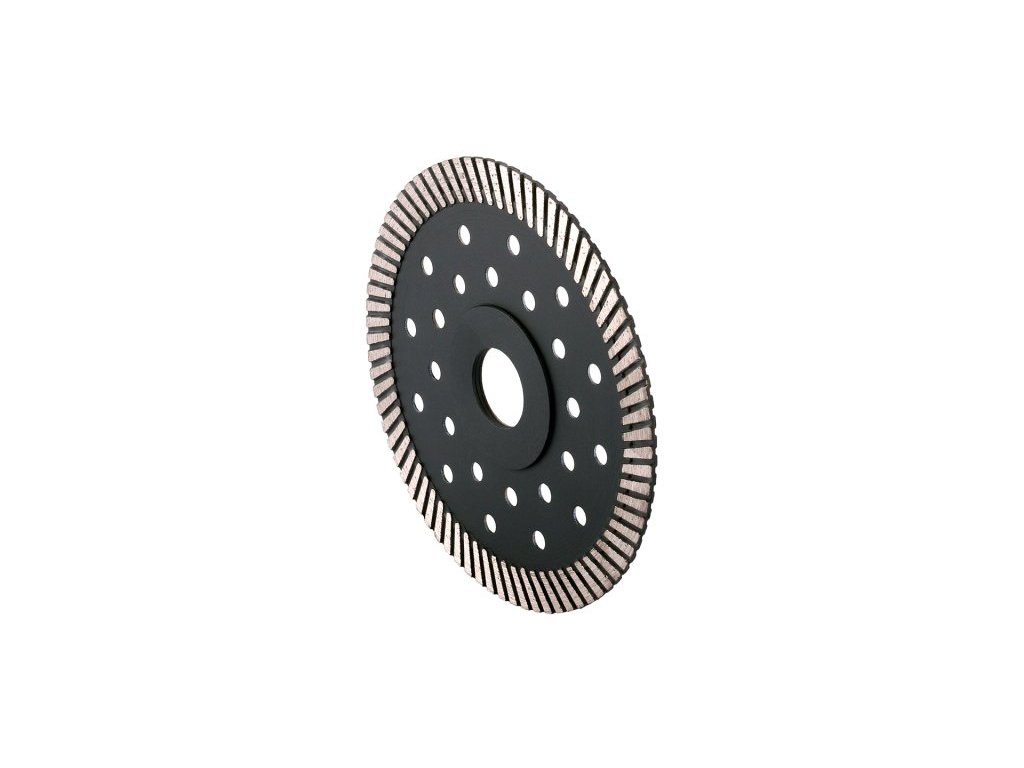 <ul style="color: red"> <li type="square"><span style="color: black"> profesionální diamantový řezný turbo kotouč pro suché i mokré řezání</li> <li type="square"><span style="color: black"> speciální tvar segmentu s vysokým obsahem diamantových zrn pro náročné řezání betonu, <b>železobetonu</b>, žuly, tvrdých dlažeb a obkladů, kamene, zdiva, apod., lze použít také na mramor, keramiku a sklo</li> <li type="square"><span style="color: black"> tenký a čistý řez</li> <li type="square"><span style="color: black"> cladicí otvory v těle kotouče, zesílený střed</li> </ul>Doplňkové parametry