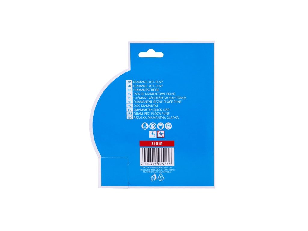 Diamantový kotouč DIAMANT, provedení : PLNÝ - celoobvodový, kvalitní diamantová vrstva s vysokým obsahem diamantového prachu, přesné zpracování - napojení na nosný disk kotouče odolávající vysokým teplotám, použití : určený pro mokré i suché řezání dlažby a obkladů, betonu, cihel, zdiva, žuly, mramoru, kamene, skla, keramiky, balení : blistr s eurootvorem, přiložen redukční kroužek z 22,2 na 20 mm, rozměry : uvedeny v názvu výrobku.Doplňkové parametry