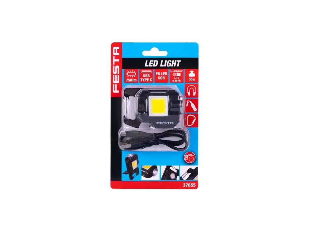 LED COB MINI nabíjecí svítilna FESTA 750lm IP44 s magnetem a karabinou
