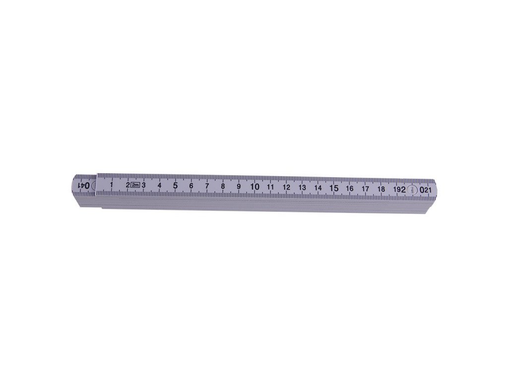 Plastový skládací metr, bílá barva, oboustranná stupnice v mm - dobře čitelný černý potisk, zámky s možností aretece dílku v 90° poloze.Doplňkové parametry