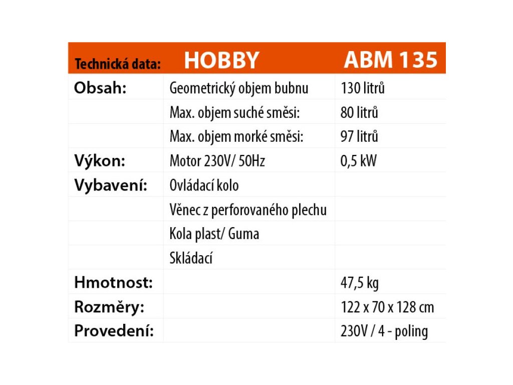 Miešačka LESCHA ABM P 135l 230V WS FR