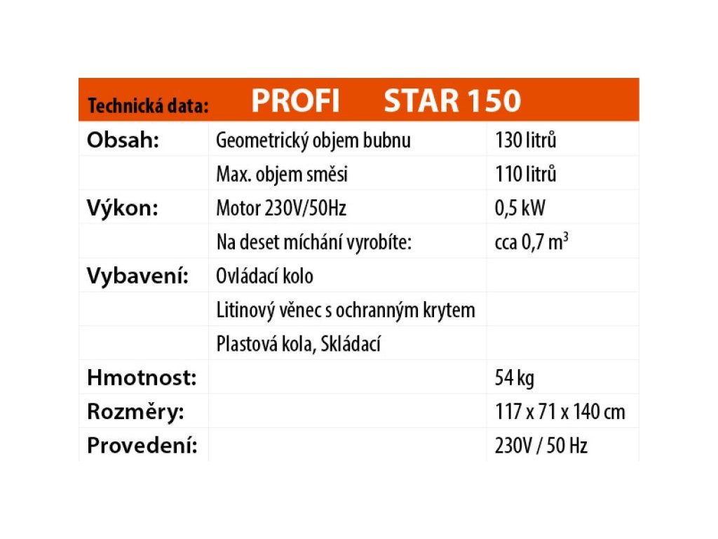 Miešačka LESCHA Star 150 125l 230V WS FR