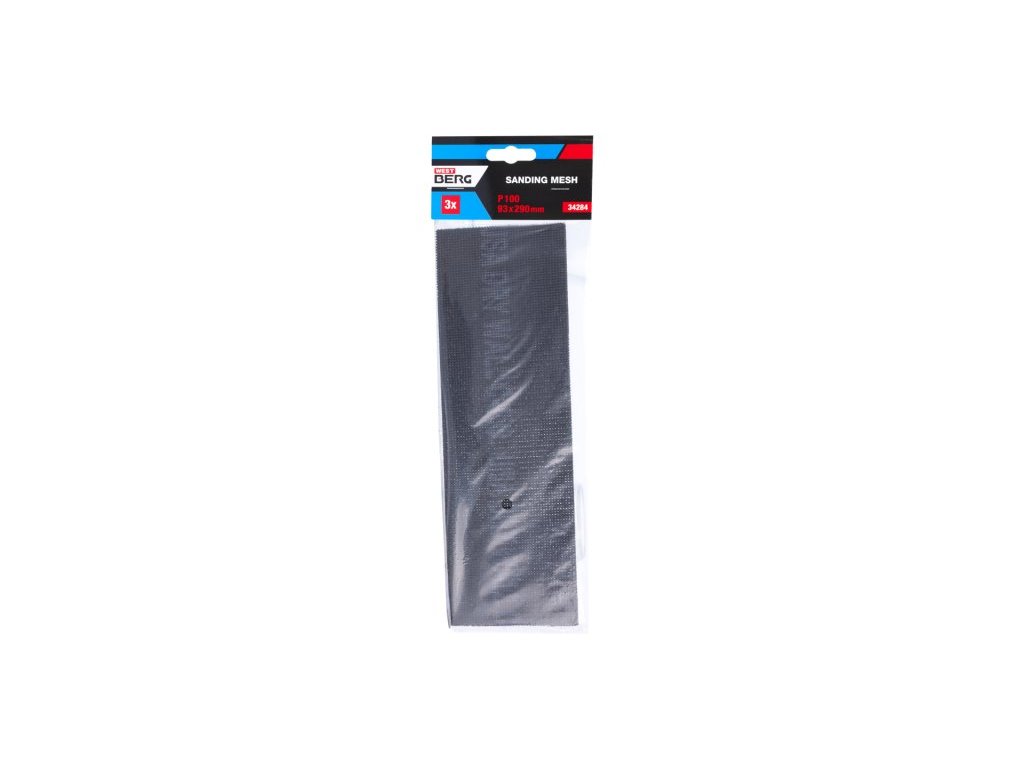 Brusná mřížka 93 x 290 mm, zrnitost 100, 3ks/sada s eurootvorem , nosná tkanina ze skelných vláken, pryskyřicí přilepena brousicí zrna karbidu křemíku nanšena antistaticky, vhodné pro broušení sadrokartonových spárovacích hmot, i dalších materiálů, výhoda mřížkové struktury proti běžným brousicím papírům spočívá v tom, že se nezanáší odbroušeným materiálem.Doplňkové parametry