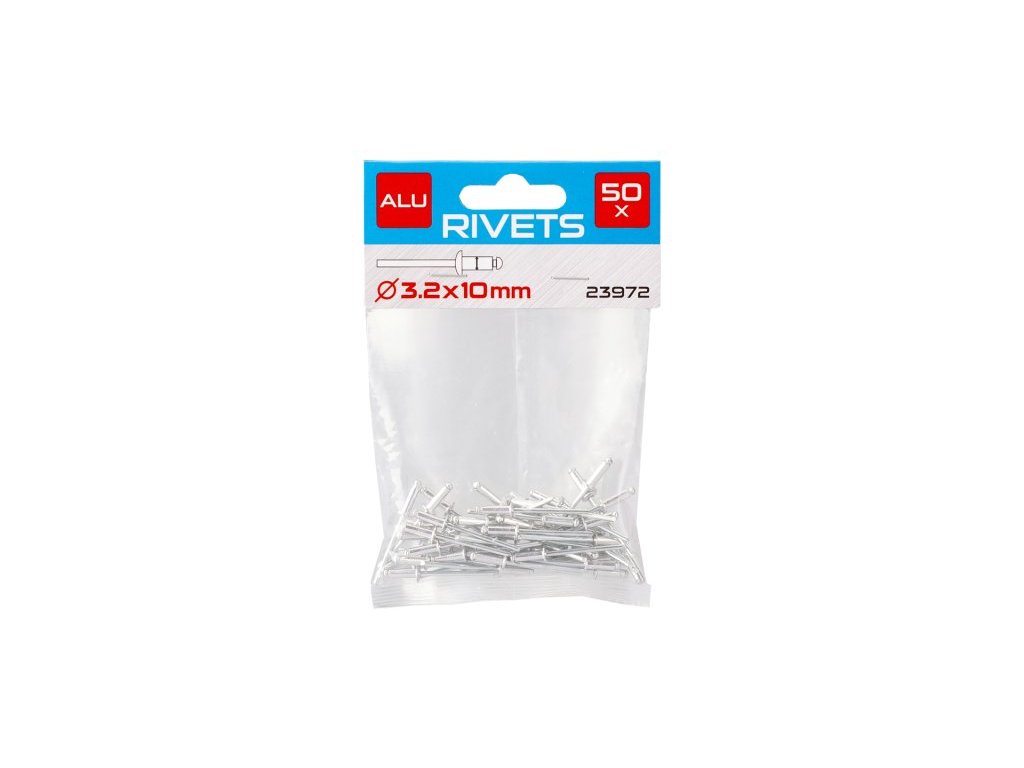 Klasické trhací slepé aluminiové nýty průměr 3,2 mm délka 10 mm v malém balení 50 kusů, vhodné pro malospotřebitele. <li type="square"><a href="https://www.youtube.com/watch?v=dYWfjB9_Jqk">Instruktážní video</a></li> <li type="square"><a href="https://www.youtube.com/watch?v=F_FR-N04_Fw&t=29s">Instruktážní video</a></li> </ul>Doplňkové parametry