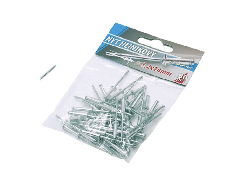 Klasické trhací slepé aluminiové nýty průměr 3,2 mm délka 12mm v malém balení 50 kusů, vhodné pro malospotřebitele. <li type="square"><a href="https://www.youtube.com/watch?v=dYWfjB9_Jqk">Instruktážní video</a></li> <li type="square"><a href="https://www.youtube.com/watch?v=F_FR-N04_Fw&t=29s">Instruktážní video</a></li> </ul>Doplňkové parametry