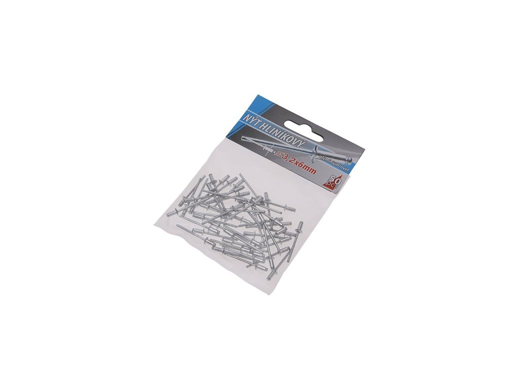 Klasické trhací slepé aluminiové nýty průměr 3,2 mm délka 6 mm v malém balení 50 kusů, vhodné pro malospotřebitele. <ul style="color: red"> <li type="square"><a href="https://www.youtube.com/watch?v=dYWfjB9_Jqk">Instruktážní video</a></li> <li type="square"><a href="https://www.youtube.com/watch?v=F_FR-N04_Fw&t=29s">Instruktážní video</a></li> </ul>Doplňkové parametry