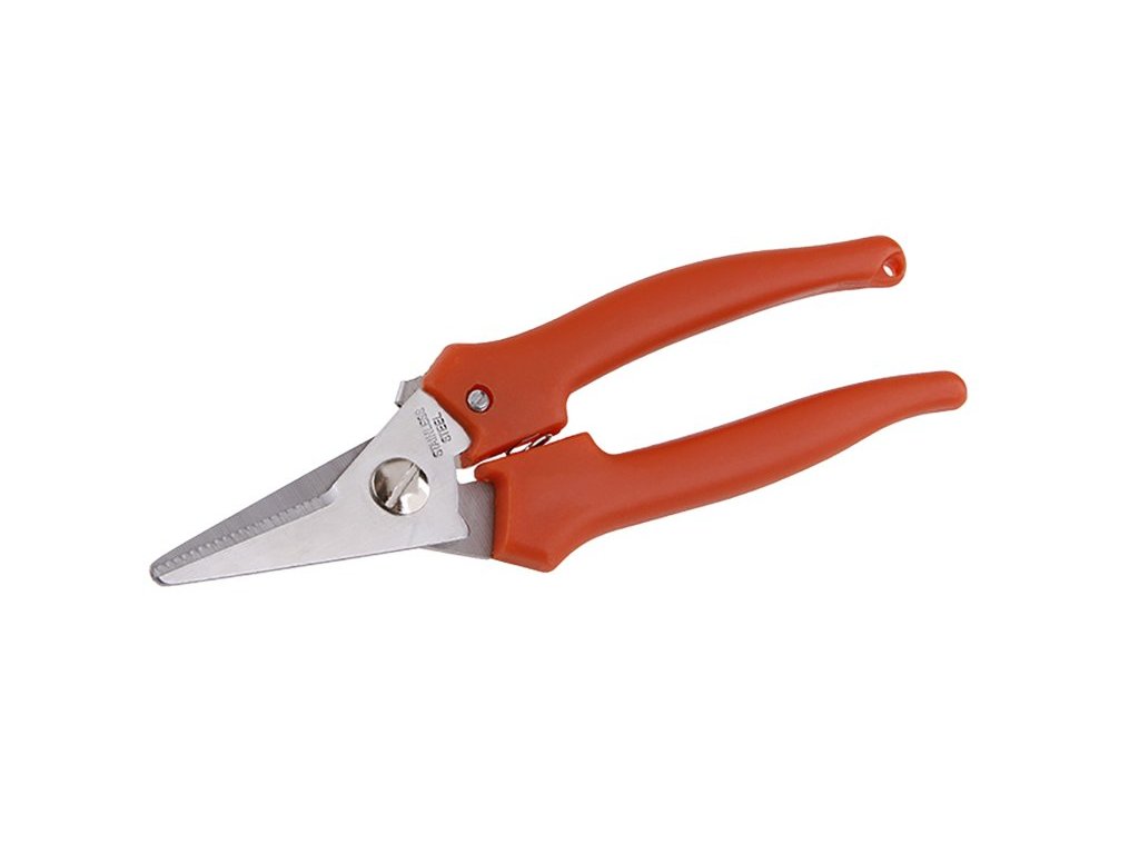 Nerezové zahradnické nůžky s plastovými ergonomicky tvarovanými ručkami, délka 150 mm, rovný břit, použití : zahradnické a domácí práce.Doplňkové parametry