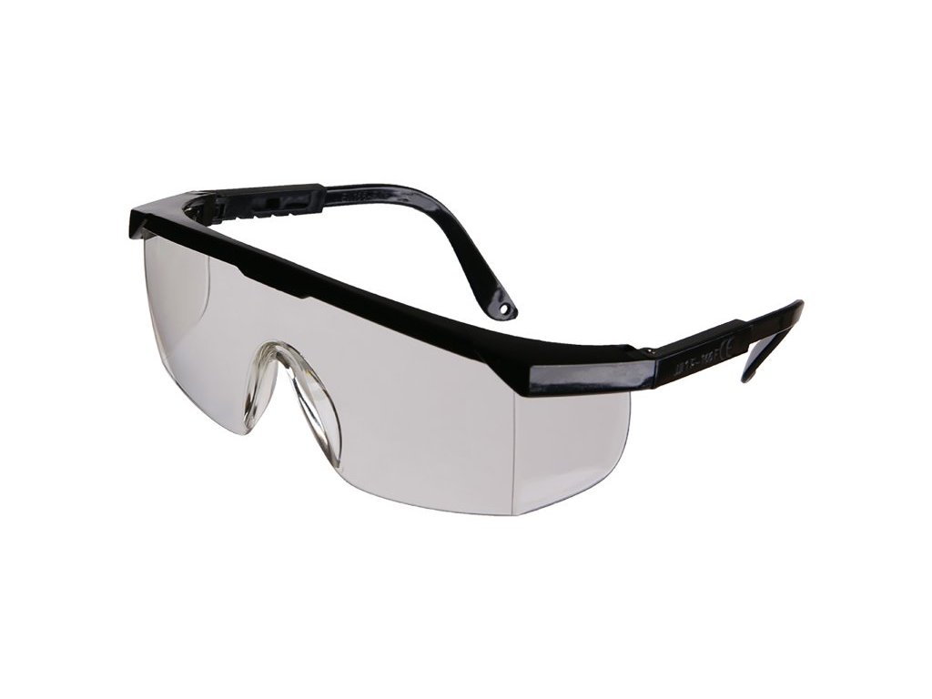 Čiré ochranné brýle s polykarbonátovými nastavitelnými straničky a zorníkem, CE EN 166.Doplňkové parametry