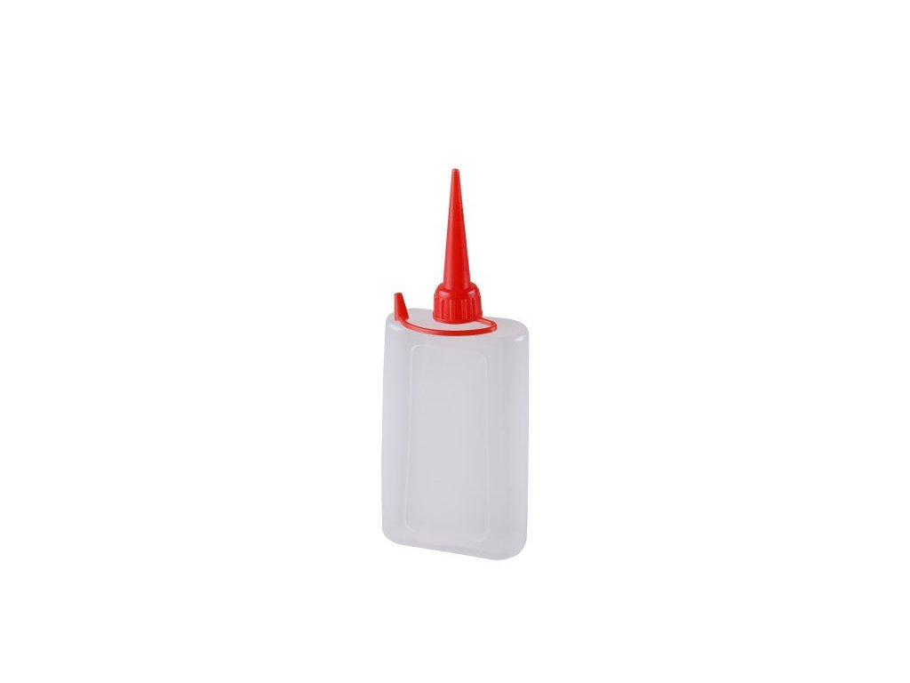 Plastová olejnička o objemu 90 ml, bílý, transparentní zásobník s červenou plastovou výtokovou hubičkou. Velmi univerzální použití pro mazání různými oleji.Doplňkové parametry