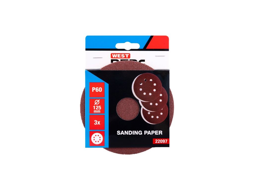 Papier brúsny výsek WESTBERG SZ P60/125 3ks 8 otvorov