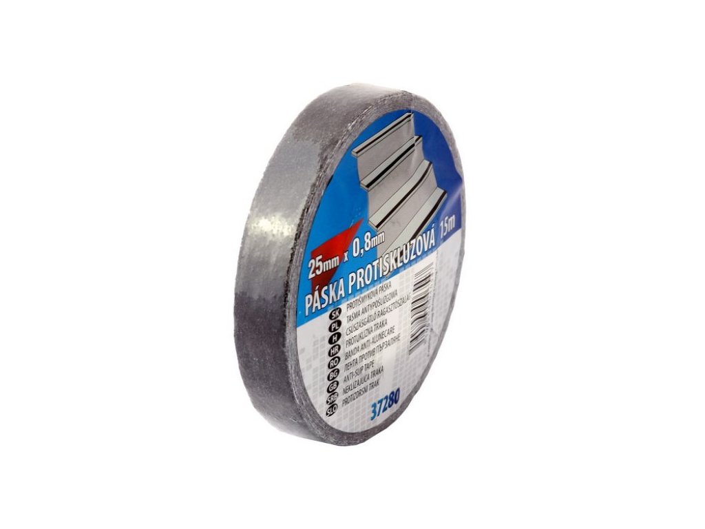 Protiskluzová páska - samolepící, jednoduchá aplikace, rozměr : 25 mm x 15 m - 0,8 mm, použití : zabraňuje nebezpečí uklouznutí na nášlapných plochách jako jsou schodiště a dlažby v interiérech a exterierech.Doplňkové parametry