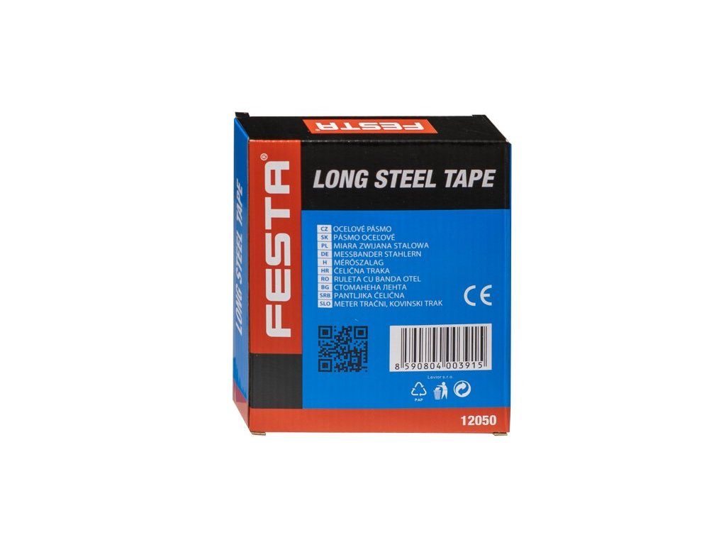 Kvalitní a přesné ocelové pásmo, kalená páska s očkem, CE certifikát - vhodné ke kalibraci, sklopná navíjecí ručka, poutko.Doplňkové parametry