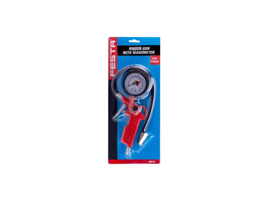 Vzduchová pistole s tlakoměrem - prac. tlak do 6barů , spotřeba vzduchu dle tlaku od 110-200L/min.Doplňkové parametry