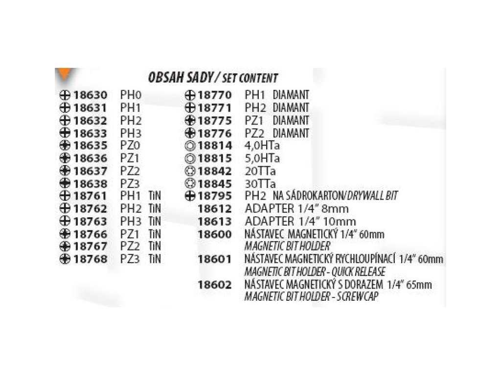 Od světového výrobce STAHLBERG s mnohaletými zkušenostmi za použití nejnovějších technologií. Praktická prodejní sada bitů a adaptérů, které jsou vyrobeny přesným kováním(zvyšuje pevnost až o 20% oproti obráběným) z chromvanadiové oceli S2 (vynikají houževnatostí), tvrzené na 61-62 HRC. Na pracovních plochách jsou diamantová zrna nebo drážky jako nejúčinnější ochrana proti vysmeknutí ze záběru. Zlatá, titan-nitridová vrstva (TiN) chrání bit proti otěru. Sada obsahuje 28 druhů po 5 nebo 10 kusech, cena je redukováva o 5% a plastový box je bezplatný dárek.Doplňkové parametry