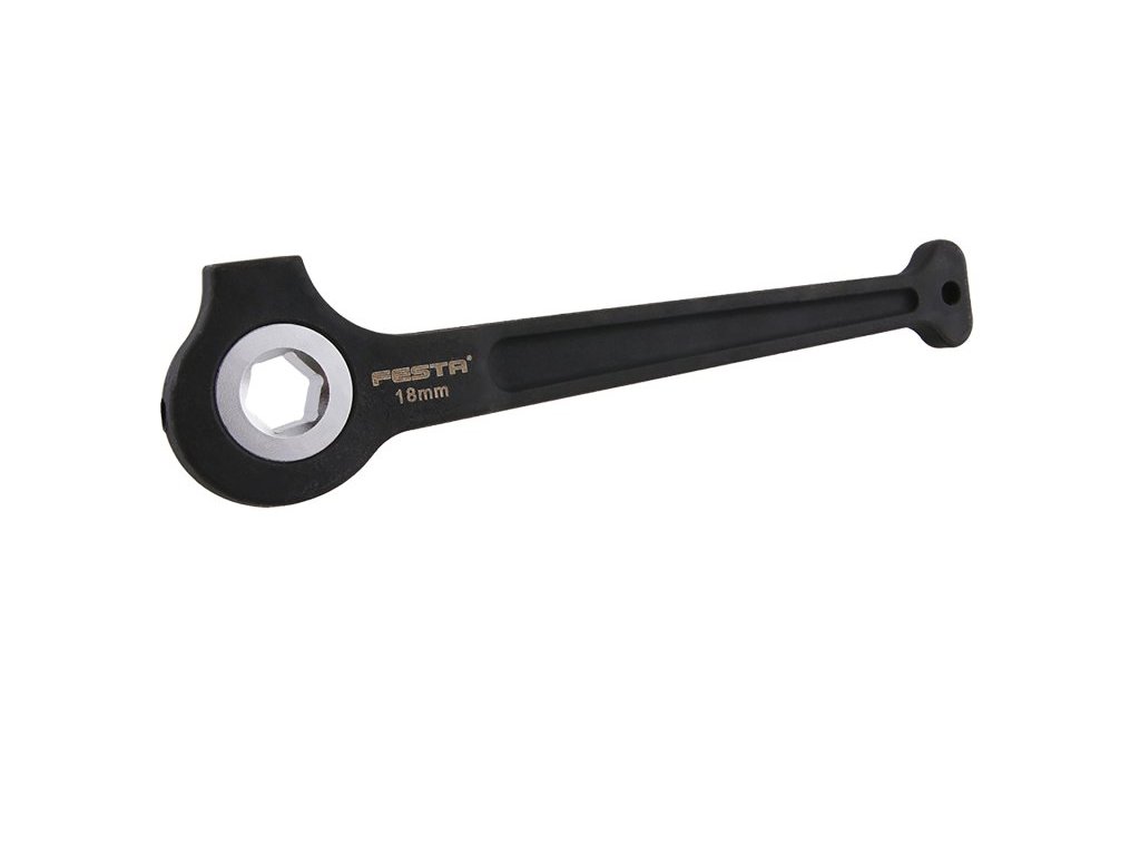 Lešenářská ráčna FESTA 18 mm je klíč - ráčna k trubkovému lešení. Tradiční lešenářská ráčna s vnitřní rohatkou, která obsahuje jen 6 velkých zubů. Díky tomu je mechanismus velmi odolný stejně, jako celá ráčna, kterou často používají i jako kladivo. Hmotnost 0,840 kg.Doplňkové parametry