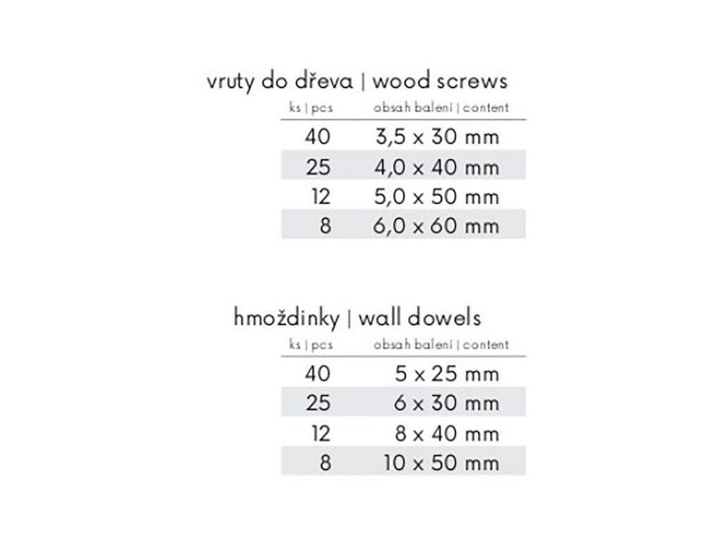 <ul style="color: red"> <li type="square"><span style="color: black"> sada vrutů a hmoždinek v plastovém oboustranném pořadači</li> </ul>Doplňkové parametry