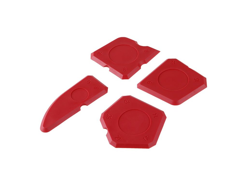 <ul style="color: red"> <li type="square"><span style="color: black"> sada stěrek na práci se silikony a tmely</li> <li type="square"><span style="color: black"> stěrky mají různé tvary přizpůsobené pro práci při tmelení, utěsňování - spár, dilatací, materiálových přechodů apod.</li> <li type="square"><span style="color: black"> jednoduchým tahem při zvolení správného tvaru stěrky začistíte nanesený silikon nebo tmel <b>(je nutné dodržet dobu zpracovatelnosti daného silikonu nebo tmelu!)</li> </ul>Doplňkové parametry