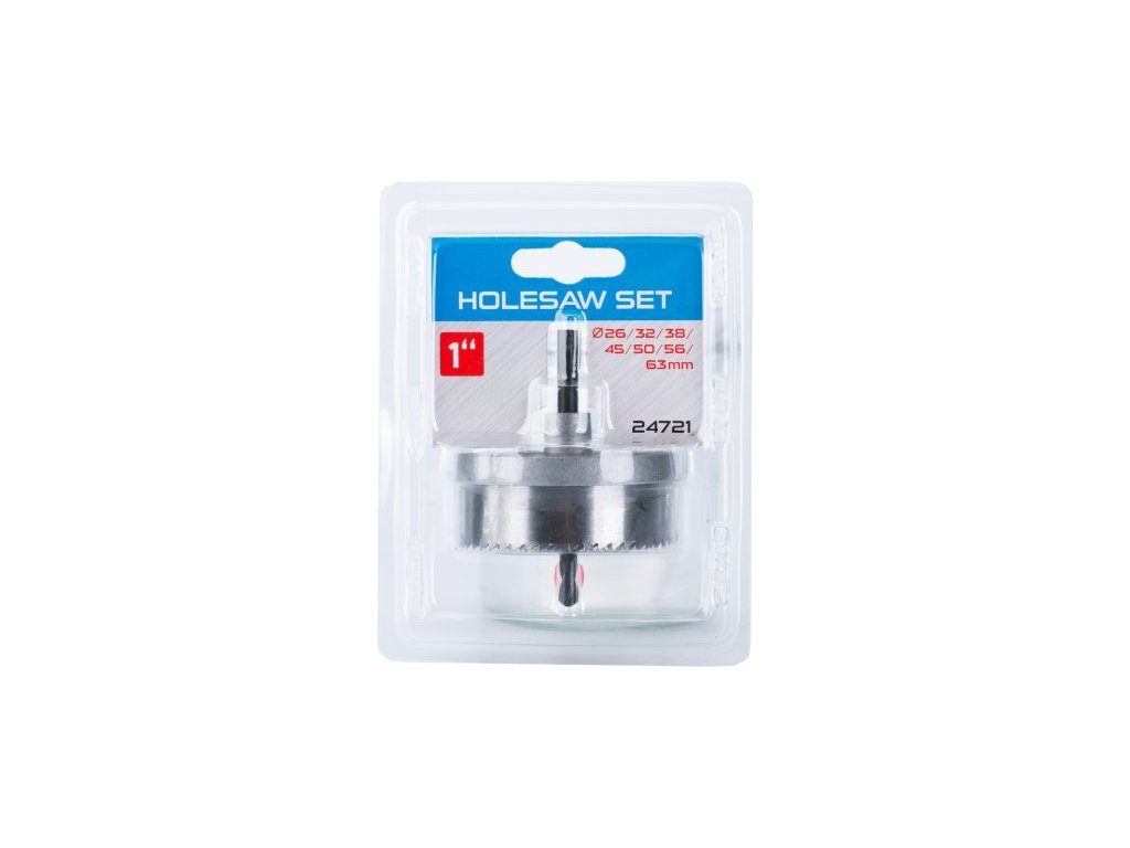 Sada vykružovacích pil do dřeva, sádrokartonu, dřevotřísek apod., s upevněním do vrtačky. Sada obsahuje 7 kusů pil o průměrech 26, 32, 38, 45, 50, 56 a 63 mm.Doplňkové parametry