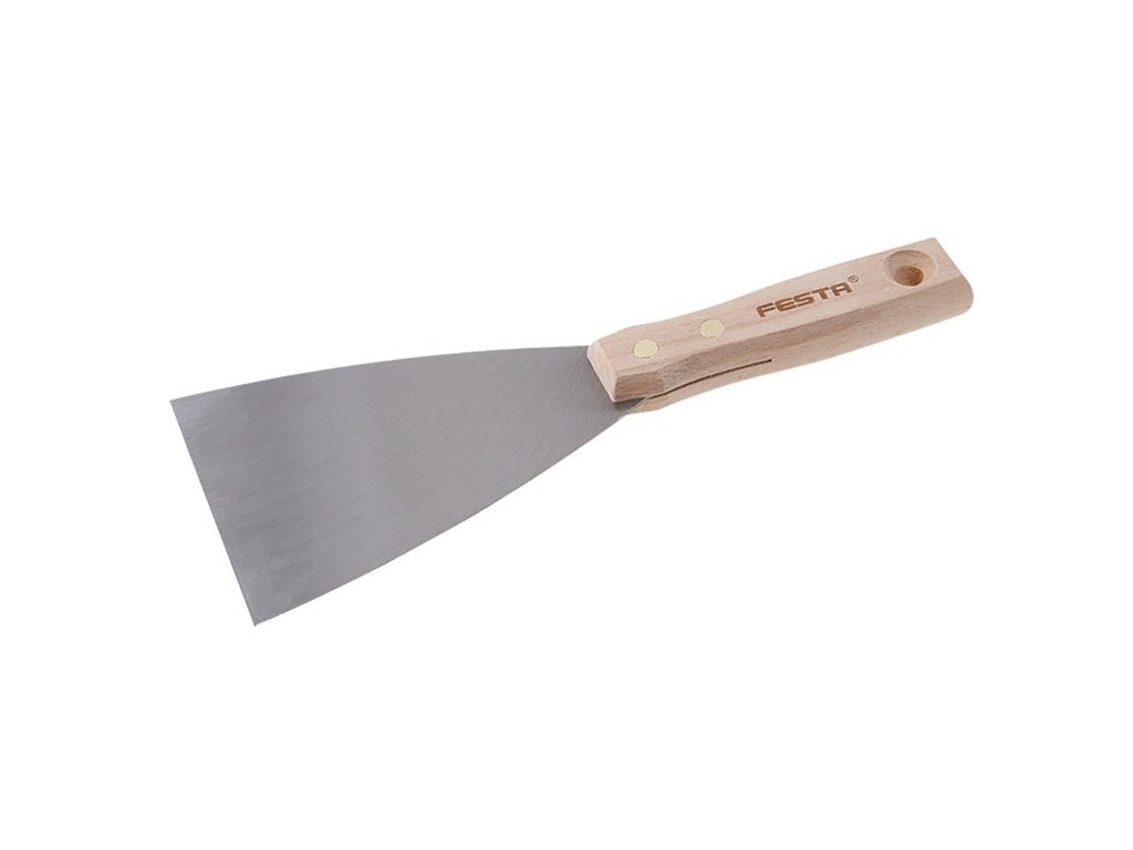 Malířská stěrka (špachtle) s broušeným ocelovým břitem a s dřevěnou nýtovanou rukojetí. Malířské stěrky se použivají pro zapravování děr, zeškrabavání přebytečného materiálu apod. Šířka břitu: 100mmDoplňkové parametry