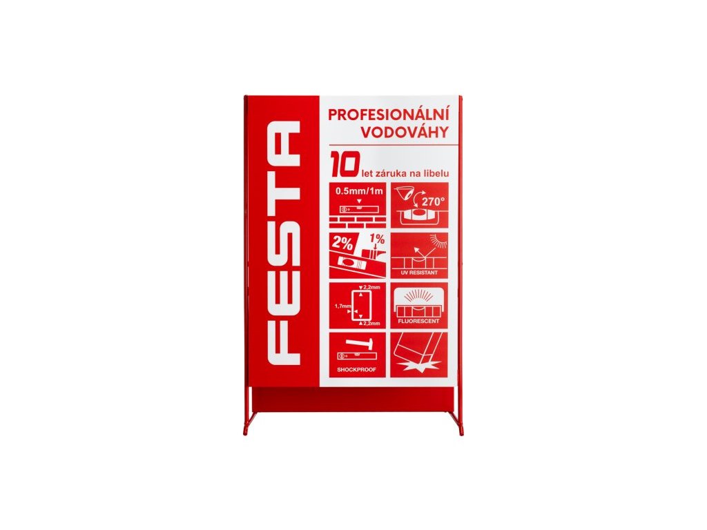<ul style="color: red"> <li type="square"><span style="color: black"> stojan na vodováhy FESTA</li> <li type="square"><span style="color: black"> komstrukce stojanu umožňuje uložit 25 kusů vodováh různých délek</li> <li type="square"><span style="color: black"> <b>DOPORUČENÉ OSAZENÍ</b> : (délka vodováhy v cm) 40 - 2x, 60 - 4x, 80 - 3x, 100 - 4x, 120 - 3x, 150 - 2x, 180 - 3x, 200 - 4x</li> <li type="square"><span style="color: black"> rozměry - 40 x 62 x 25 cm </ul>Doplňkové parametry