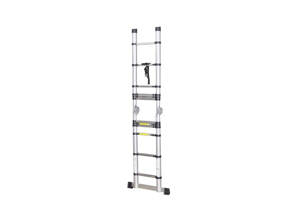 <ul style="color: red"> <li type="square"><span style="color: black"> žebřík teleskopický - skládací, hliníkový - <b>maximální délka 3,8 m (složený do podyby štaflí max. 1,9 m)</b></li> <li type="square"><span style="color: black"> 12 (6) příček</li> <li type="square"><span style="color: black"> <b>maximální zatížení 150 kg</b></li> <li type="square"><span style="color: black"> umístění pod maximálním úhlem <b>25 °</b></li> <li type="square"><span style="color: black"> stabilní a pevná konstrukce, snadná manipulace - rozložení i složení, pevné zámky jednotlivých příček</li> <li type="square"><span style="color: black"> kompaktní rozměry po složení jen <b>465 x 850 x 155 mm</b>, hmotnost <b>13.7 kg</b></li> </ul>Doplňkové parametry
