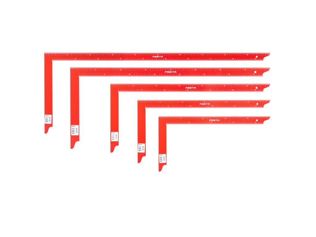 Tesařský úhelník z jednoho kusu tvrzené pružinové oceli, stupnice v mm - přesnost 0,5mm/m.Doplňkové parametry