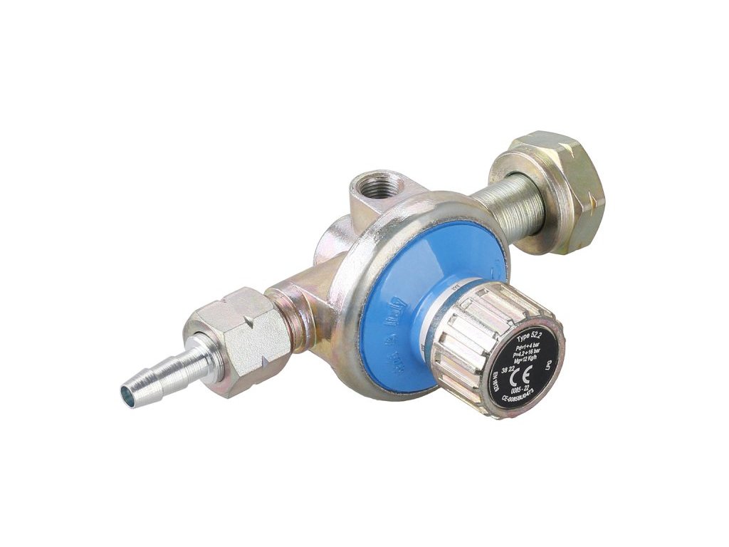 <ul> <li type="square"> vysokotlaký regulátor na plynná media ( butan, propan a jejich media ) s regulací</li> <li type="square"> vstupní tlak 2 - 19 bar, výstupní tlak <b>rozsah 0,5 - 4 bar</b></li> <li type="square"> jmenovitý průtok 12 kg / h</li> <li type="square"> připojení - <b>vstup</b> připojení na láhev 5 - 10 kg, <b>výstup</b> G 3/8 LH nebo hadice 9 mm</li> </ul>Doplňkové parametry