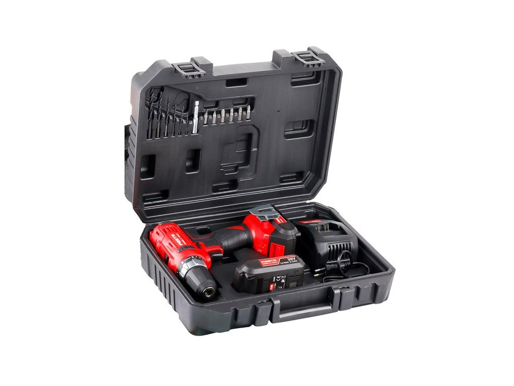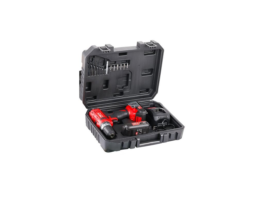 <ul style="color: red"> <li type="square"><span style="color: black"> vrtací AKU šroubovák s kroutícím momentem <b>28 Nm</b></li> <li type="square"><span style="color: black"> lehký, výkonný a použitelný do materiálů - <b>kovy, dřevo, plasty, apod.</b></li> <li type="square"><span style="color: black"> otáčky <b>0 - 350 / 0 - 1300 min -1</b>, sklíčidlo <b>1 - 10 mm</b>, hmotnost bez baterie <b>0.9 kg</b></li> <li type="square"><span style="color: black"> plynulé nastavení volby druhu použití otočným prstencem - vrtání * šroubování s volbou utahovacího momentu v rozsahu 19ti stupňů</li> <li type="square"><span style="color: black"> pohodlná pogumovaná ergonomická rukojeť, umístění ovládacích prvků uzpůsobené pro pravou i levou ruku</li> <li type="square"><span style="color: black"> <span style="color: red"><b>FESTA</b> <span style="color: black"> <b>SHARE<span style="color: red"> 20 V</b><span style="color: black"> - AKU vrtačka je součástí skupiny výrobků s možností využívat <b>Li-ion</b> batarie 2.0 Ah a 4.0 Ah ve všech strojích takto označených</li> <li type="square"><span style="color: black"> <b>Li-ion</b> technologie použitá v bateriích FESTA Power x tools nabízí možnost dobíjet baterie kdykoliv - bez snižování jejich kapacity, u <b>Li-ion</b> baterií také dochází k jen <b>velmi pomalému samovybíjení</b></li> <li type="square"><span style="color: black"> pro běžnou práci je baterie s kapacitou 2.0 Ah (28080) dostačující - nabíjecí čas 40 min., pro práci s předpokladem větší zátěže, doporučujeme použít baterii s kapacitou 4.0 Ah (28081) - nabíjecí čas 90 min</li> <li type="square"><span style="color: black"> v praktickém setu v kufru je kromě AKU vrtačky také - <b>2 x baterie Li-ion 2.0 Ah, rychlonabíječka 2.4 A, unašeč 1/4", bity a vrtáky HSS</b></li> </ul>Doplňkové parametry