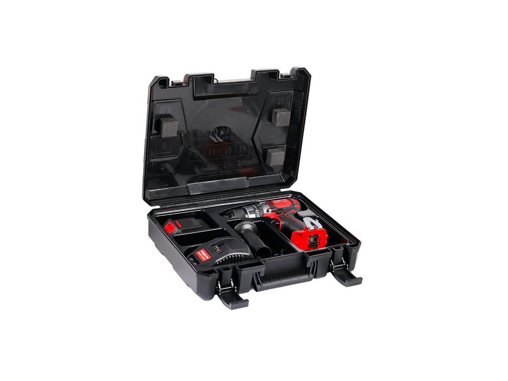 <ul style="color: red"> <li type="square"><span style="color: black"> vrtací AKU šroubovák s příklepem <b>BRUSH<span style="color: red">LESS</b><span style="color: black"> - bezkartáčový (bezuhlíkový) motor s velkým výkonem <b>80 Nm</b></li> <li type="square"><span style="color: black"> nový moderní typ motoru <b>BRUSH<span style="color: red">LESS</b><span style="color: black"> je <b>výkonnější, má menší nároky na spotřebu energie a delší životnost</b></li> <li type="square"><span style="color: black"> lehký, výkonný a použitelný do většiny materiálů - <b>kovy, dřevo, plasty a díky příklepu také do zdících materiálů</b></li> <li type="square"><span style="color: black"> <b>celokovová převodovka</b> dává možnost plně využít maximální výkon a zajišťuje plynulý chod AKU vrtačky</li> <li type="square"><span style="color: black"> otáčky <b>0 - 550 / 0 - 2000 min -1</b>, sklíčidlo <b>2 - 13 mm</b>, hmotnost bez baterie <b>1.4 kg</b></li> <li type="square"><span style="color: black"> plynulé nastavení volby druhu použití otočným prstencem - vrtání s příklepem * vrtání * šroubování s volbou utahovacího momentu v rozsahu 20ti stupňů</li> <li type="square"><span style="color: black"> pohodlná pogumovaná ergonomická rukojeť, umístění ovládacích prvků uzpůsobené pro pravou i levou ruku</li> <li type="square"><span style="color: black"> <span style="color: red"><b>FESTA</b> <span style="color: black"> <b>SHARE<span style="color: red"> 20 V</b><span style="color: black"> - AKU vrtačka je součástí skupiny výrobků s možností využívat <b>Li-ion</b> batarie Li-ion 2.0 Ah a 4.0 Ah ve všech strojích takto označených</li> <li type="square"><span style="color: black"> <b>Li-ion</b> technologie použitá v bateriích FESTA Power x tools nabízí možnost dobíjet baterie kdykoliv - bez snižování jejich kapacity, u <b>Li-ion</b> baterií také dochází k jen <b>velmi pomalému samovybíjení</b></li> <li type="square"><span style="color: black"> pro běžnou práci je baterie s kapacitou 2.0 Ah (28080) dostačující - nabíjecí čas 40 min., pro práci s předpokladem větší zátěže - vrtání s příklepem apod. doporučujeme použít baterii s kapacitou 4.0 Ah (28081) - nabíjecí čas 90 min</li> <li type="square"><span style="color: black"> v praktickém setu v kufru je kromě AKU vrtačky také - <b>baterie 2.0 Ah, rychlonabíječka 2.4 A, přídavná rukojeť</b></li> </ul> <ul style="color: red"> <li type="square"><a href="https://www.youtube.com/watch?v=j5rCsaZsjLA&t=77s">Instruktážní video</a></li> </ul>Doplňkové parametry