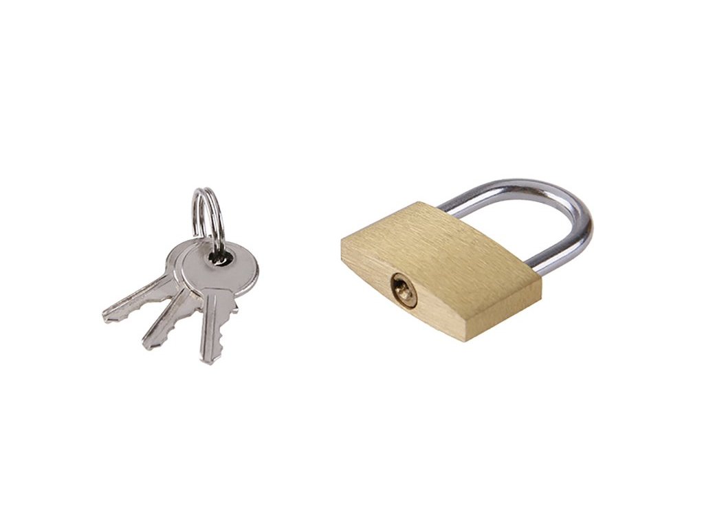 30mm mosazné tělo zámku Mosazná vložka Klíče: 3 Váha:31g Oblouk z tvrzené oceli pro lepší odolnost proti prořezání.Doplňkové parametry