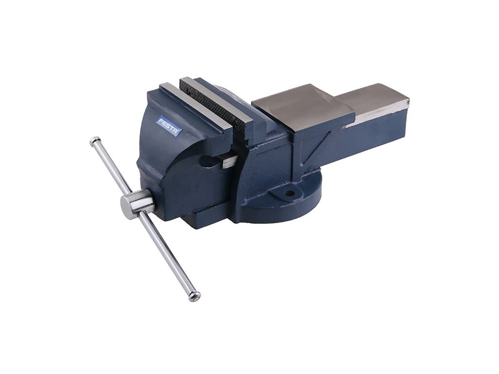 Masivní svěrák s kovadlinkou z litiny, tvrzené čelisti, tělo a pohyblivé rameno odlité každé z jednoho kusu zaručuje velkou odolnost a pevnost, váha:7000g, Max. rozevření: 100mm.Doplňkové parametry
